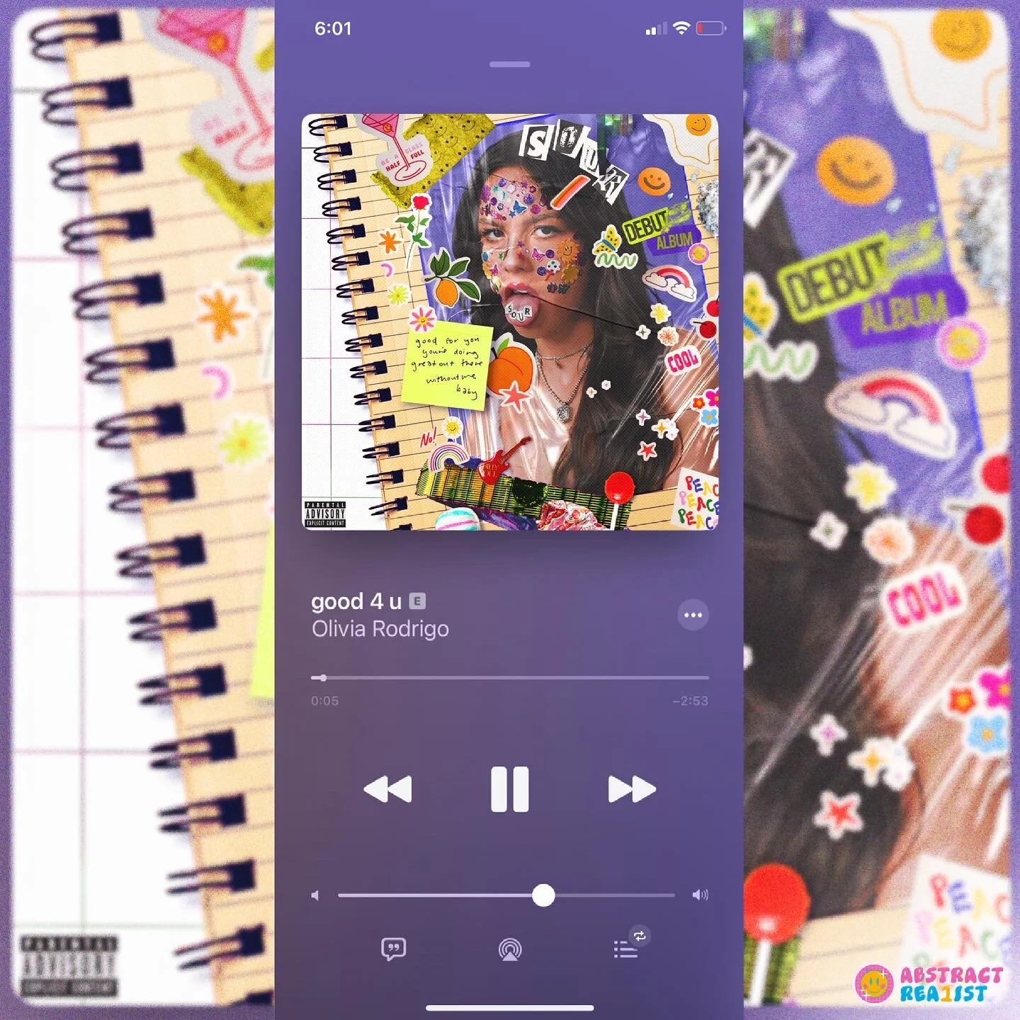 This alternative design, created with the intention of complimenting Olivia Rodrigo’s original SOUR album cover art, started off as a digital art sketch. Instead, I thought a graphic edit might do the idea more justice. I mixed the collage elements I had originally pictured with a more inventive notepad background as well as individually photographed and edited stickers. (This is probably one of my largest .psd files to date, coming in at about 4 and a half GB. Eek.)